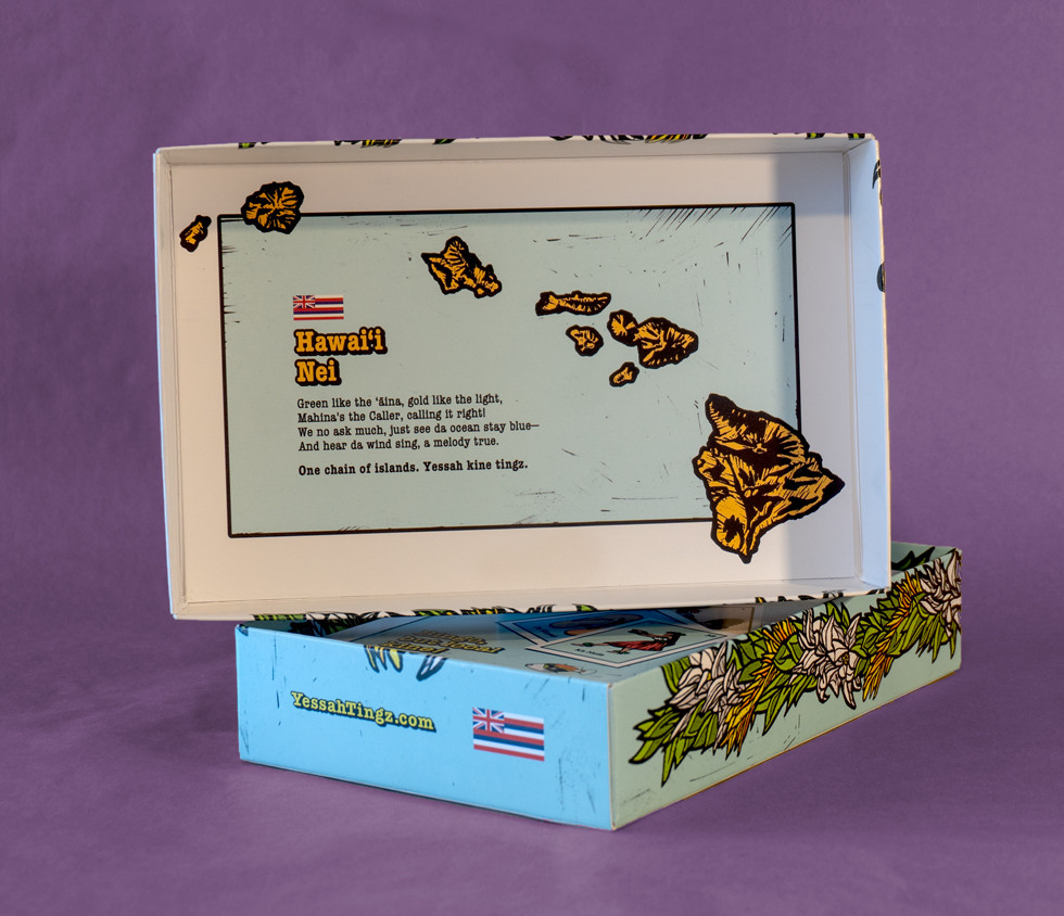 Inside every Yessah Bingo box, you'll find everything needed for island-style fun. Designed for 2-10 players from Keiki to Kupuna, Yessah Bingo brings the aloha of Hawaii right to your hale.